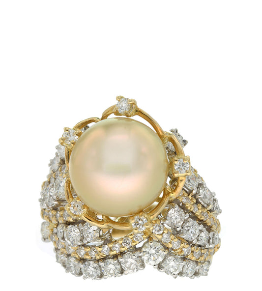 Vortici Luminosi Golden Pearl Diamonds Ring