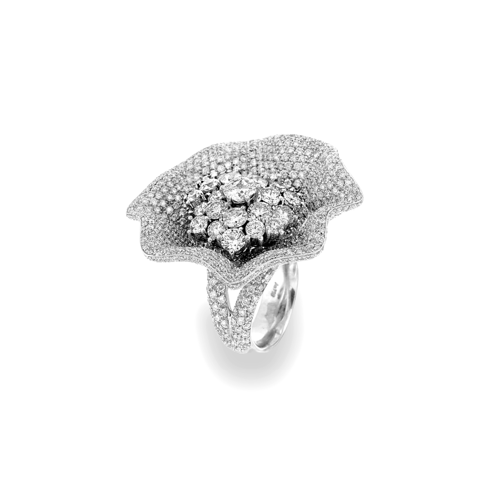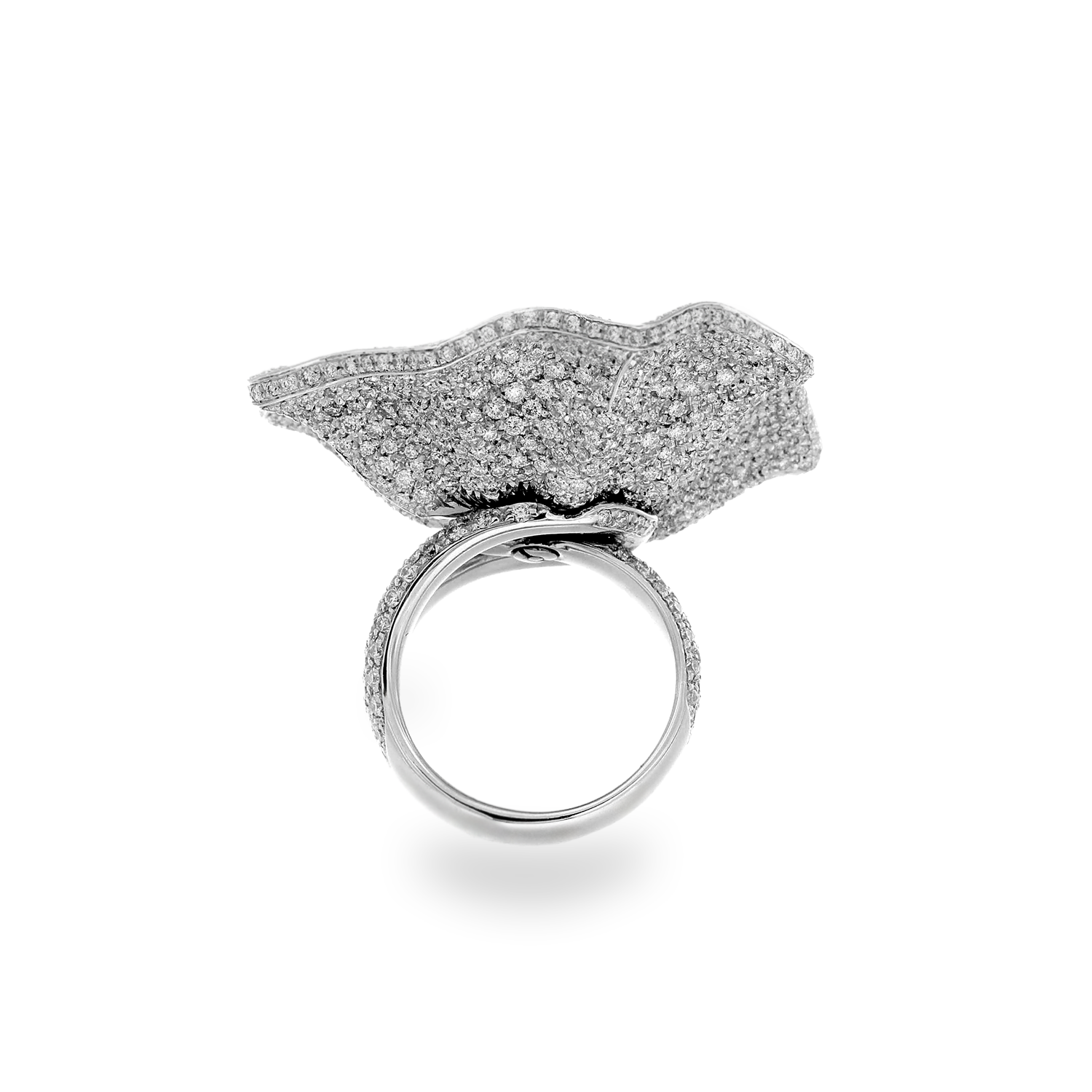 This 18K white gold ring showcases a 0.91-carat Round Arges diamond, HRD-certified GSI2, as its centerpiece. Surrounding it are 16.50 carats of natural Round Brilliant diamonds, expertly arranged to enhance brilliance and fire.